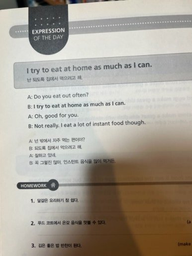 실생활 회화에서 자주 쓰는 표현들을 배우는데
