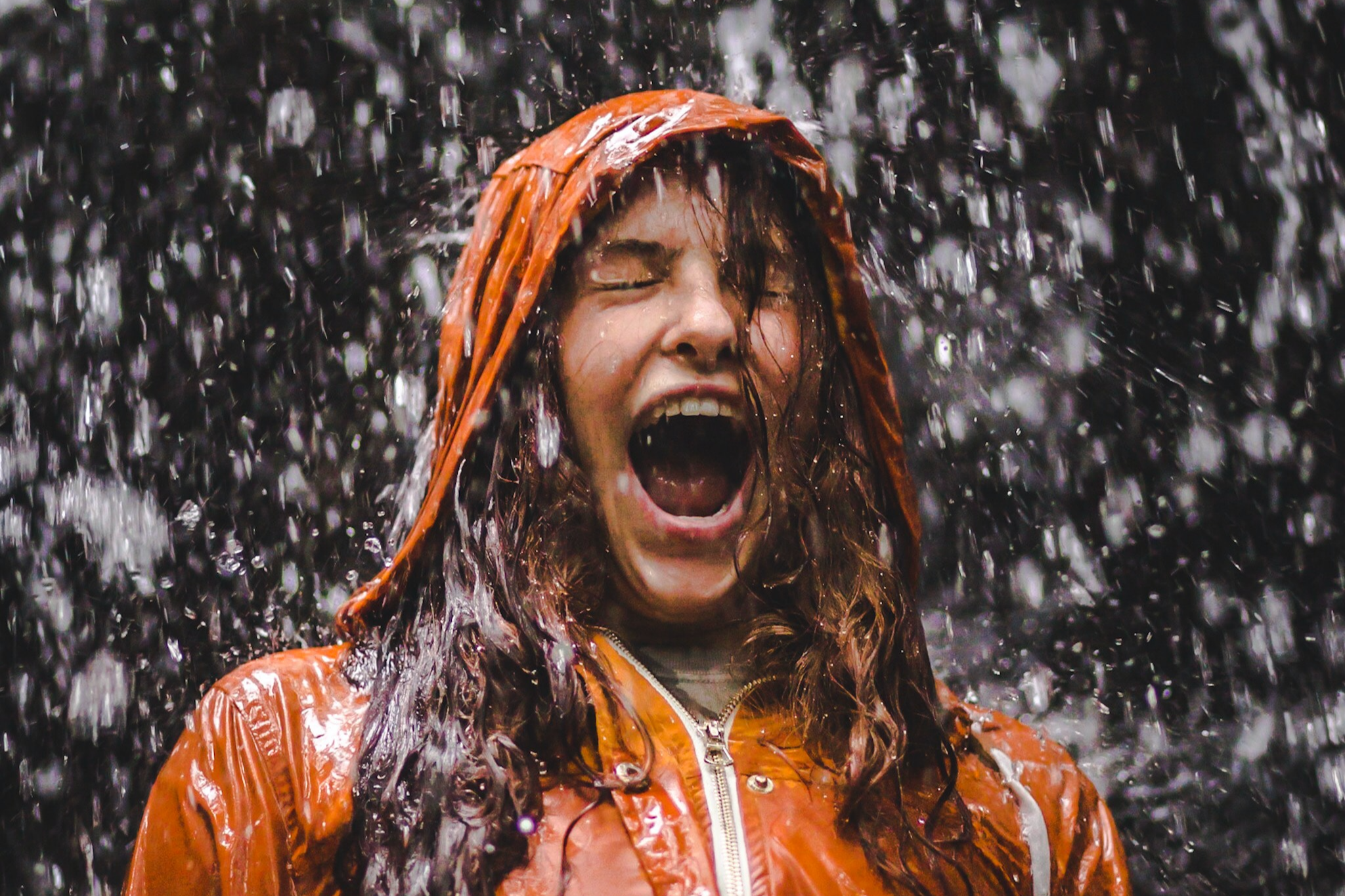 비가 퍼붓다, 비가 양동이로 들이붓듯 내리다.